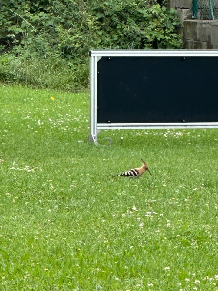 Gefährdung | der Wiedehopf steht in Österreich auf der Roten Liste. Biotopzerstörung, Pestizide, … führen zu deutlichem Bestandsrückgang. Umso erfreulicher unser Exemplar auf dem Sportplatz von St.Martin! |